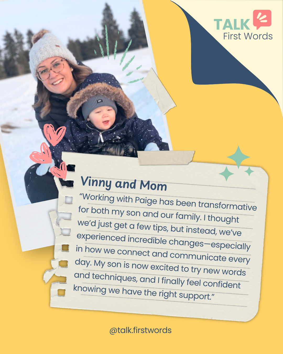The resources and support Paige provided gave me fresh perspectives and approaches I never would have thought of on my own. And because I had my own experience with speech as a child, I was nervous my son might struggle too. Knowing we had this guidance early on gave me peace of mind and has already made such a difference.